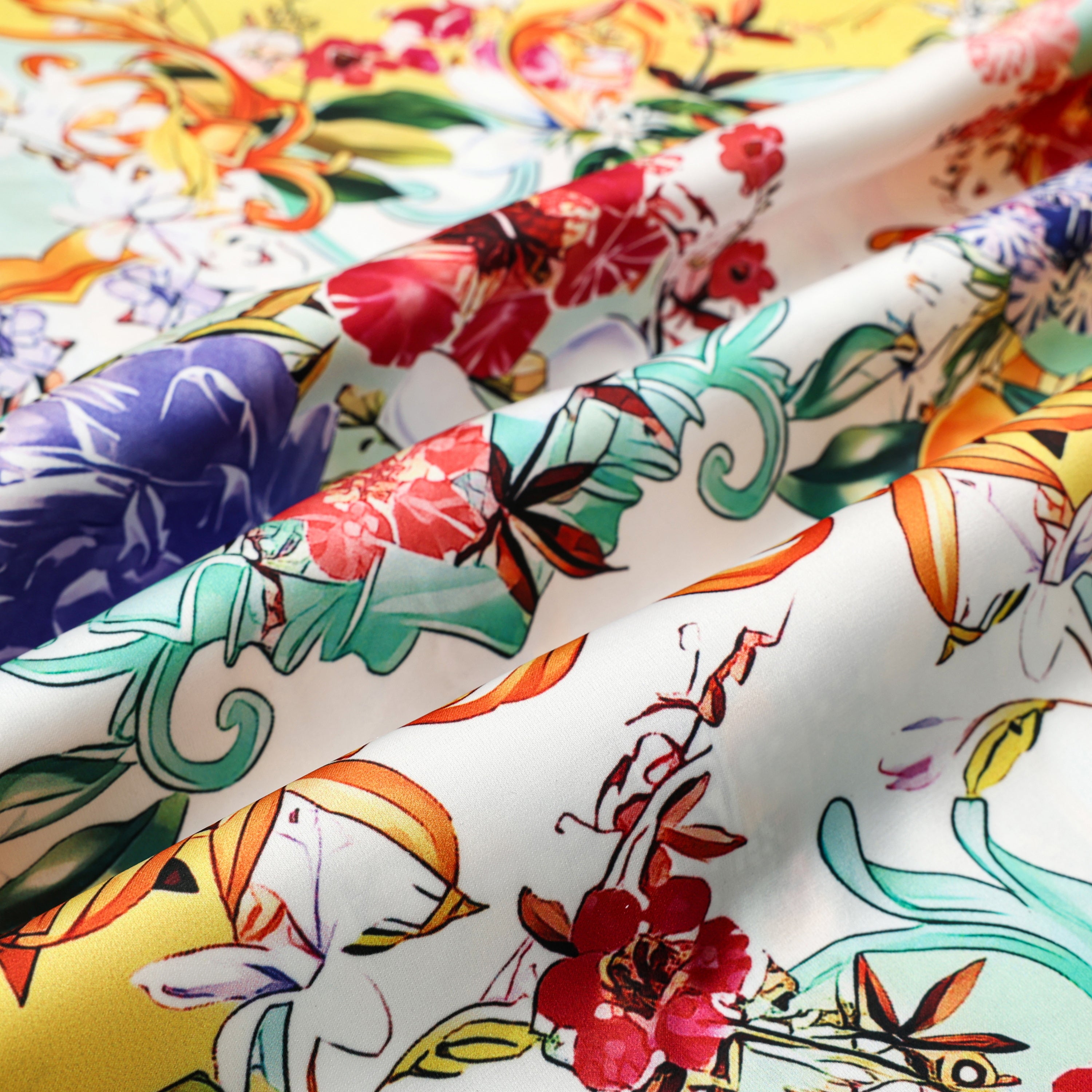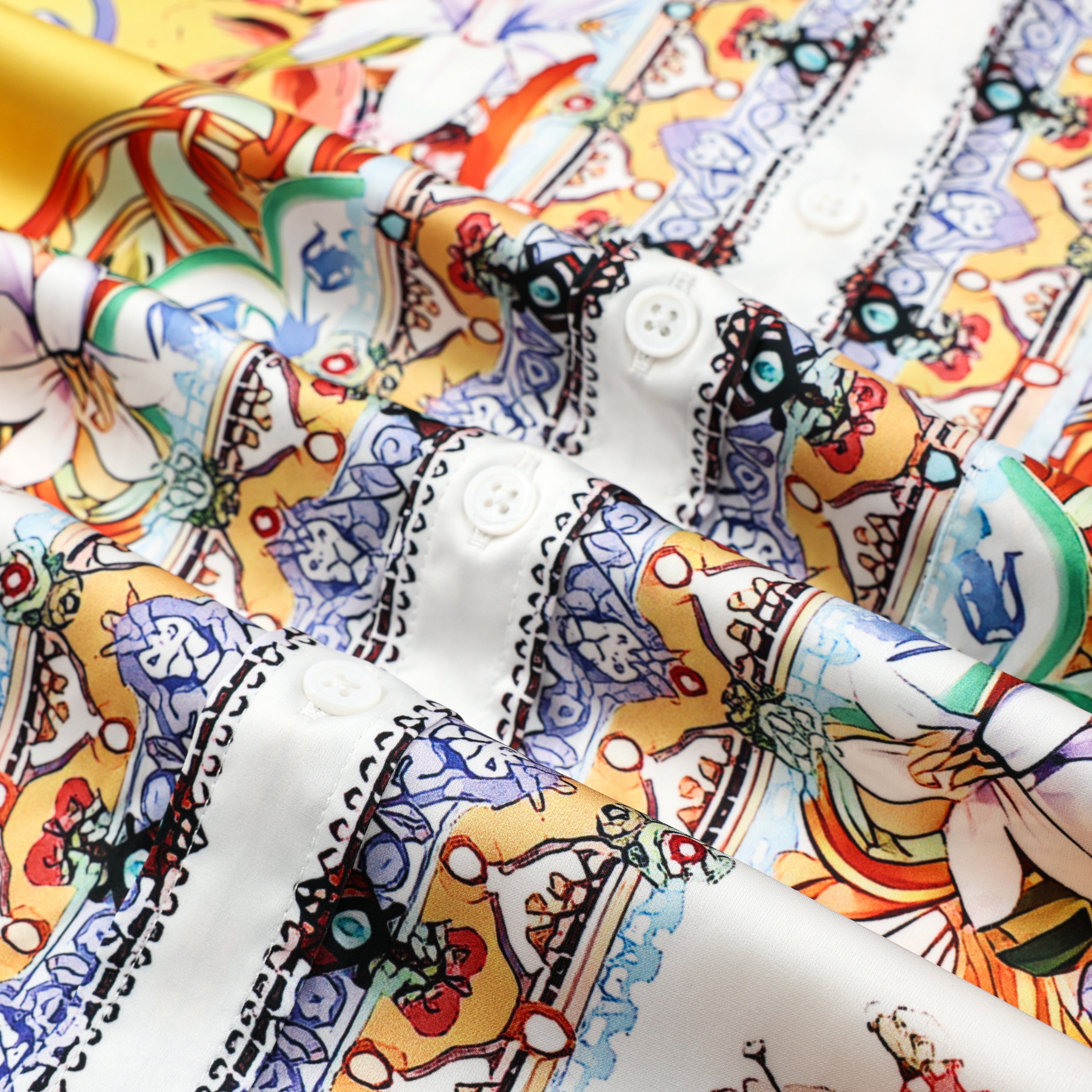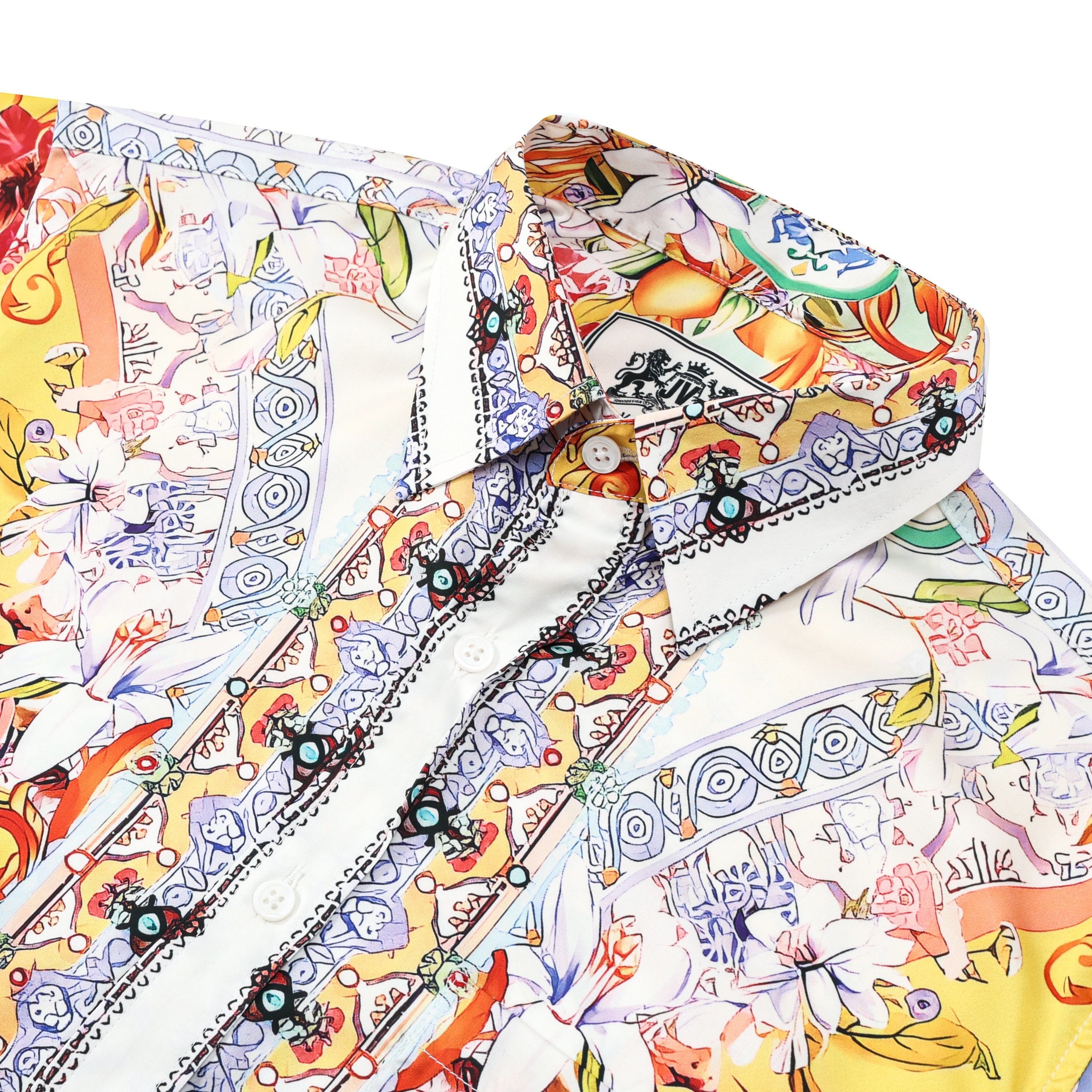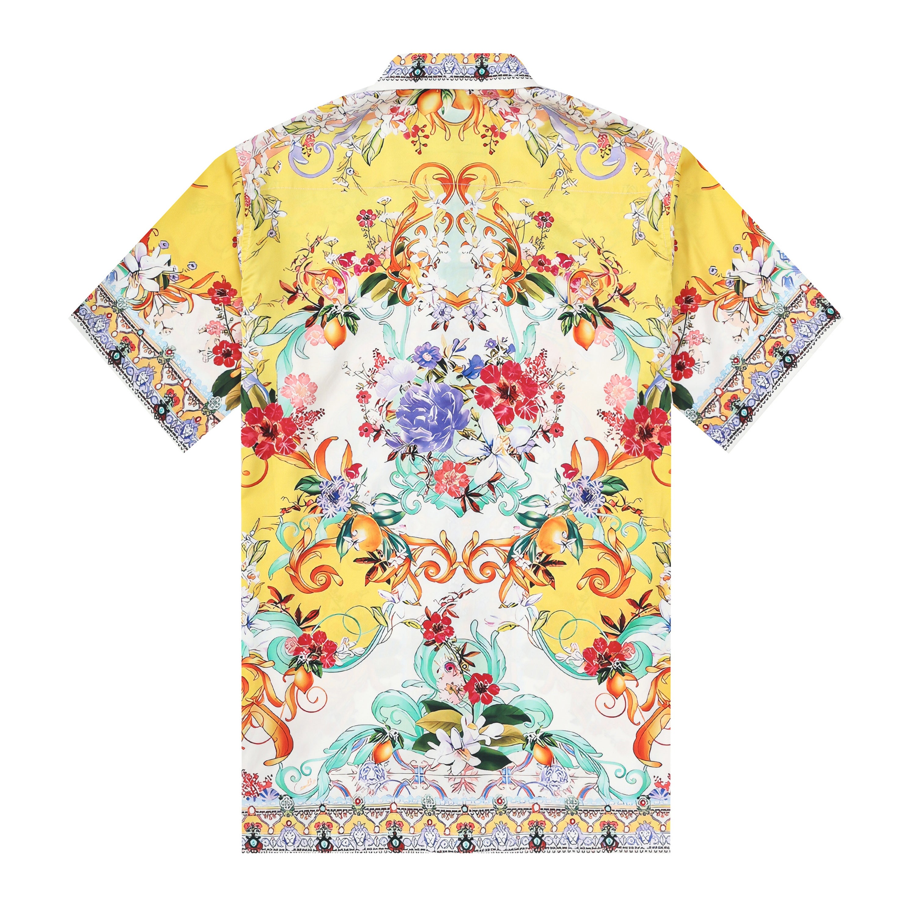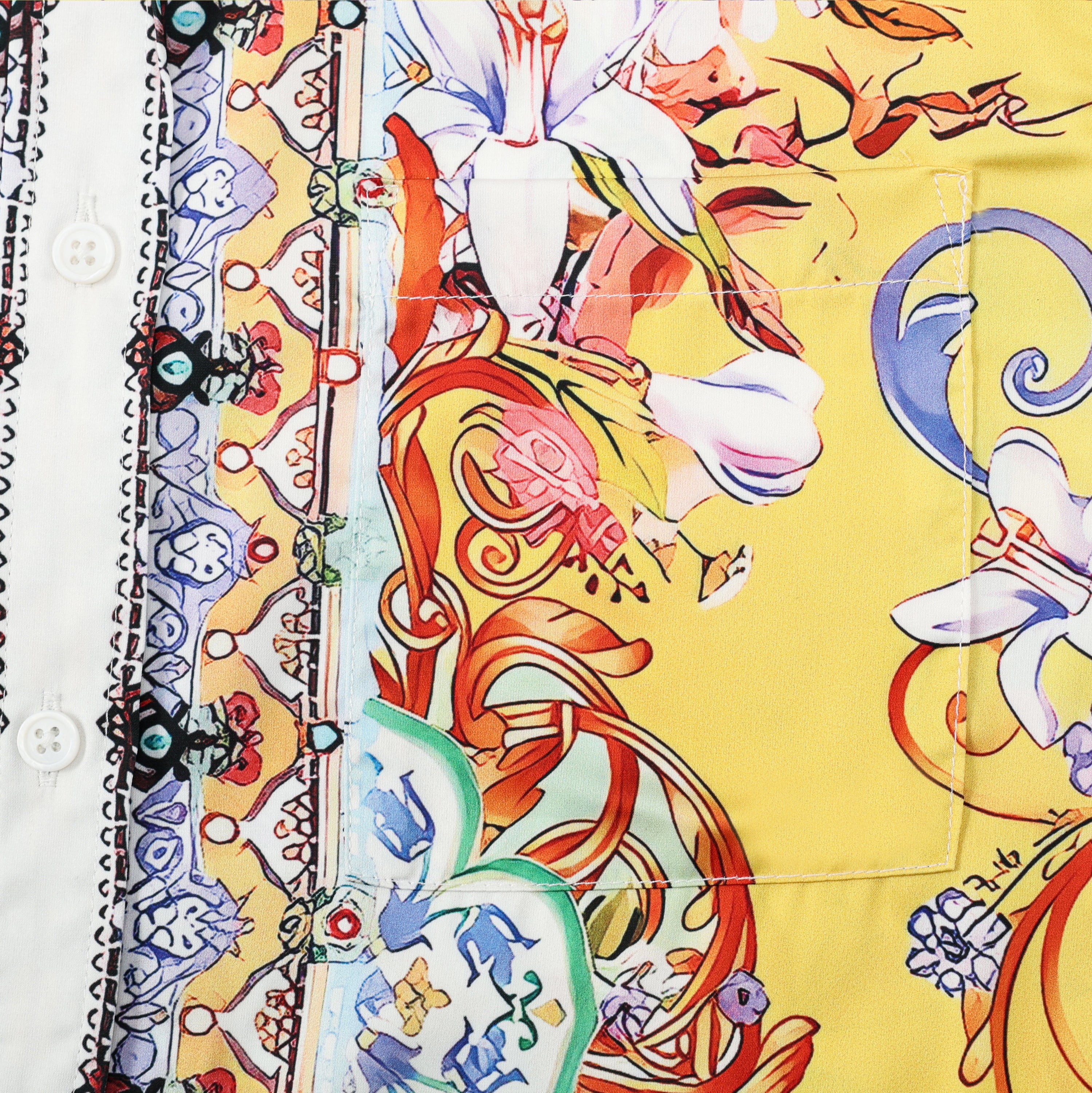 Yellow Floral Pattern Silk Fiber Short Sleeve Shirt